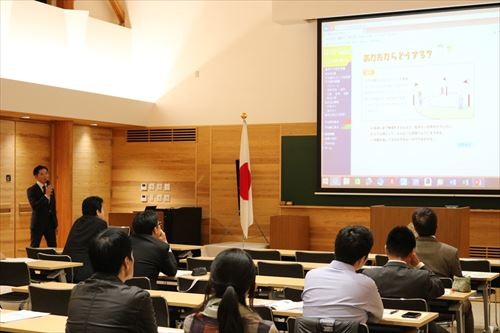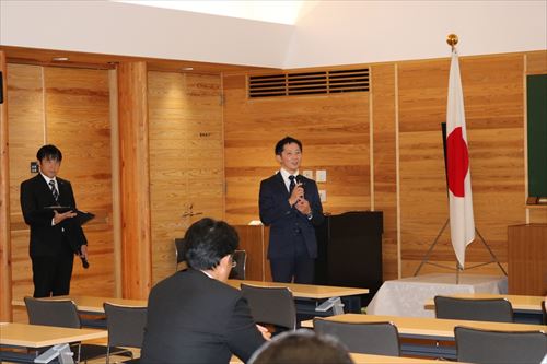 最初に中津記念館敷地内にある廣池千九郎先生の生家を見学し、中津記念館の松下事務長より、廣池千九郎先生のご両親の人柄や廣池家にまつわるエピソードなどについて説明をしていただきました。